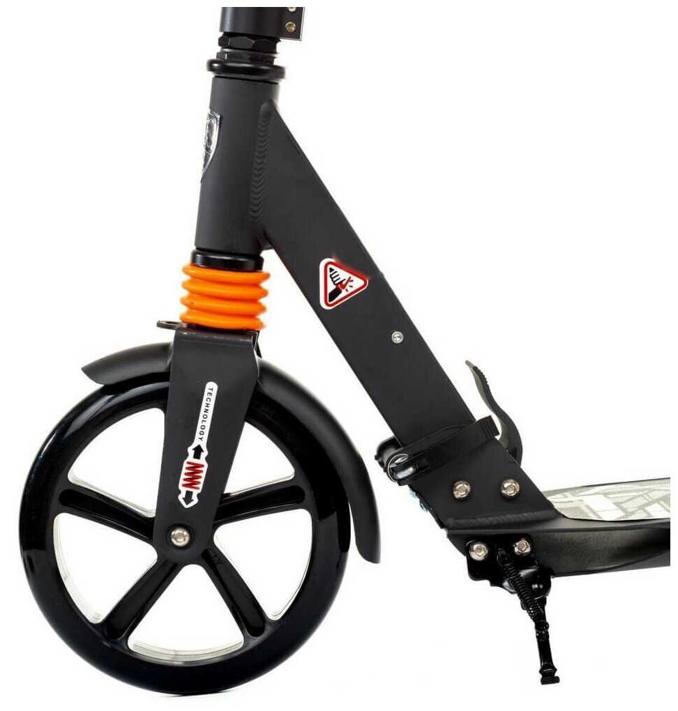 - - Упакован был только в пупырку и белую пленку. Где ставится нога, там есть маленькое окошко где видно амортизатор, так вот видно что окошко клеили, есть следы клея и пальцев.
