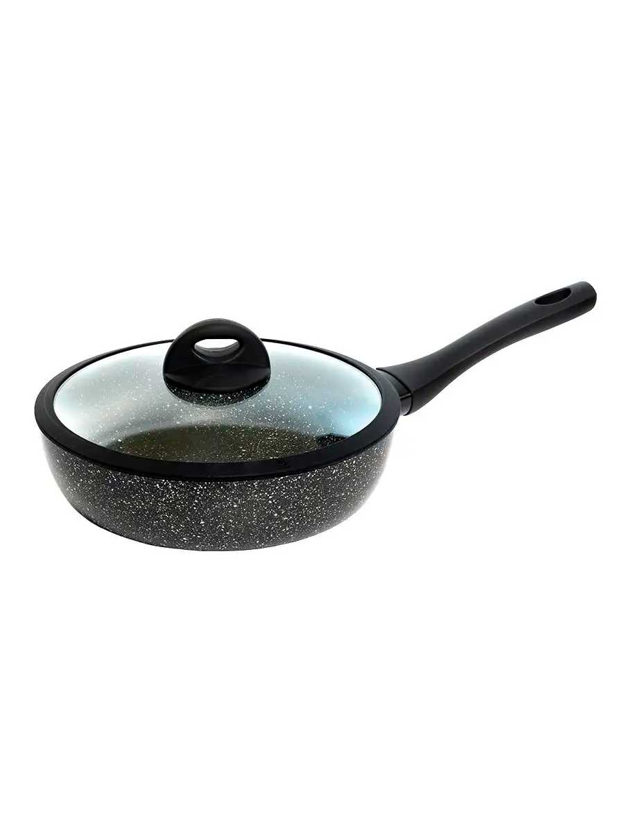 Бортик невысокий, видно на фото с зубочисткой для сравнения. Это подходит для разовых блюд вроде омлета или зажарки, не для объёмных тушений. Пользователи специально измеряли, чтобы понять объём.