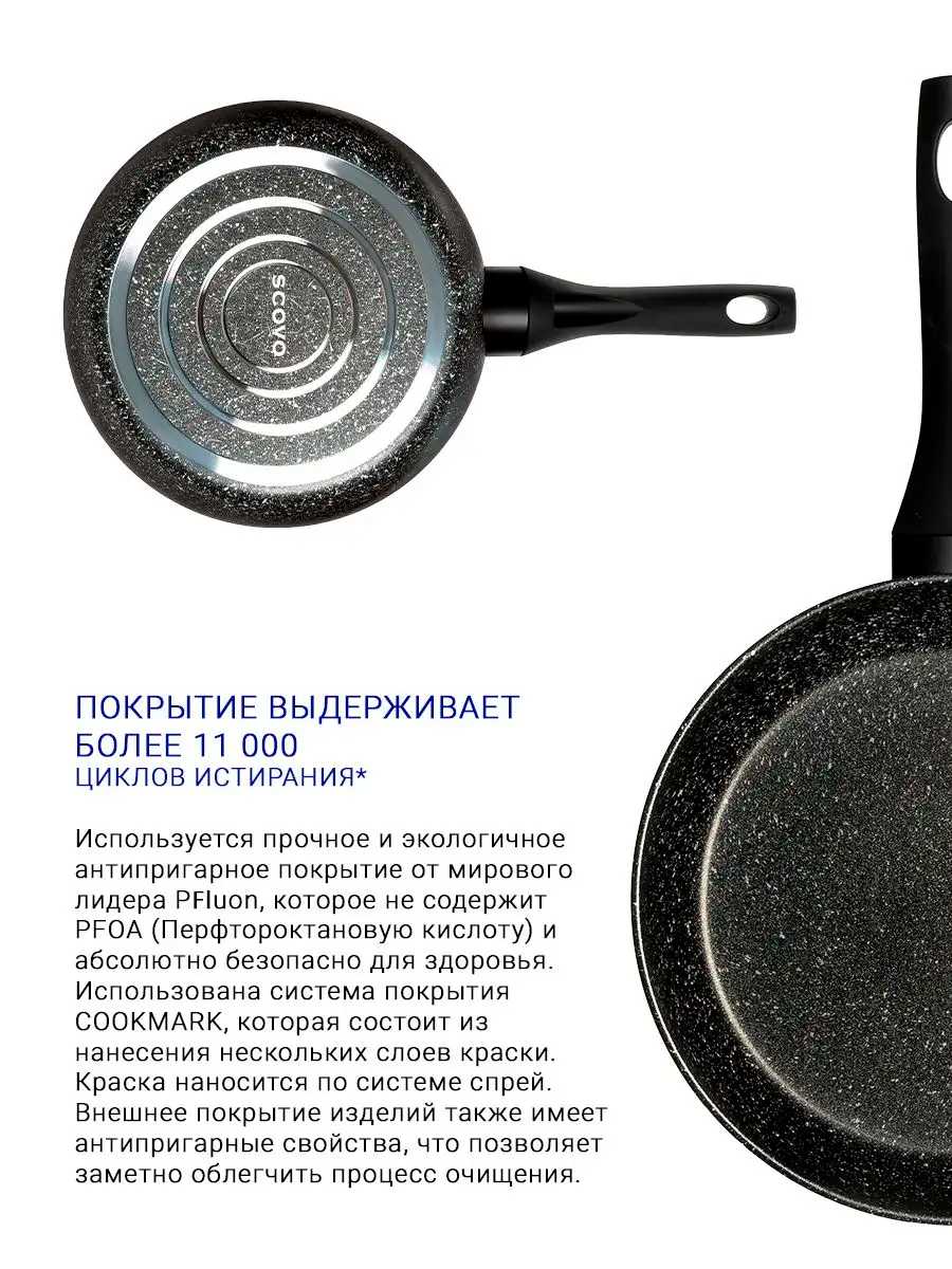 - Гладкое на ощупь, в отличие от шершавых покрытий на других сковородках.