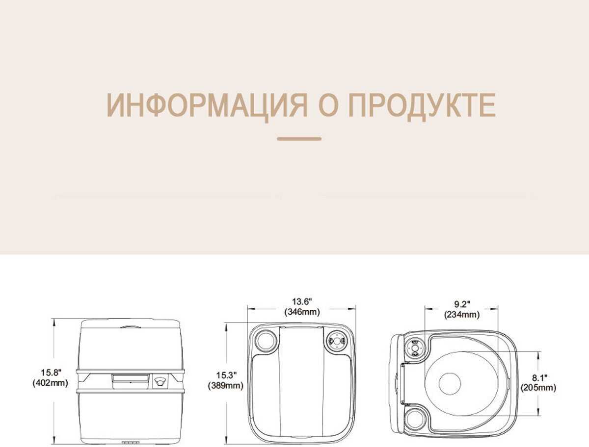 - + компактный ,качество пластика хорошее,индикатор заполнения есть,не плохой биотуалет,как раз искали что с собой брать на отдых