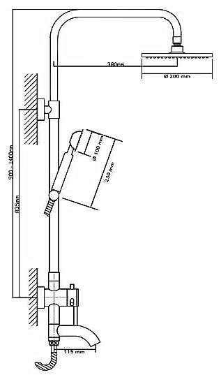| Дополнительная информация : | высота стойки для душа: 1400 мм, диаметр душевой лейки: 100 мм, диаметр верхнего душа: 200 мм |