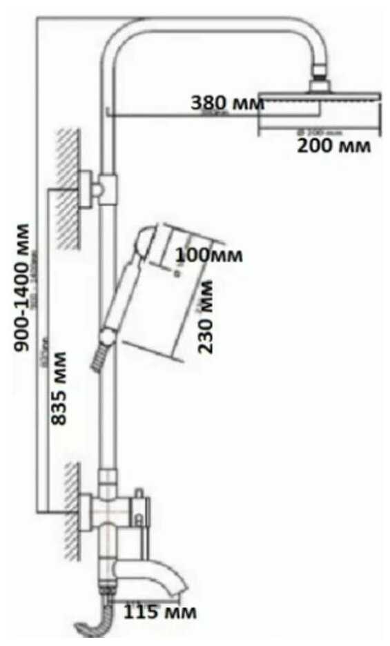 | Дополнительная информация : | высота стойки для душа: 1400 мм, диаметр душевой лейки: 100 мм, диаметр верхнего душа: 200 мм |