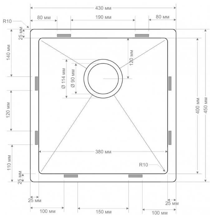 Характеристи Seaman ECO Bremen SBO-4345, 45х43см, нержавеющая сталь