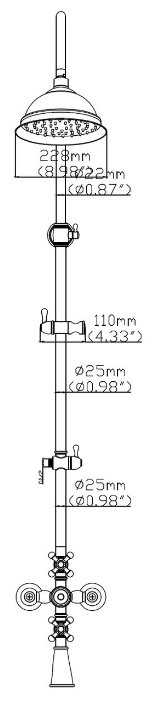 | Дополнительная информация : | высота стойки для душа: 1375 мм, диаметр душевой лейки: 55 мм, диаметр верхнего душа: 228 мм |