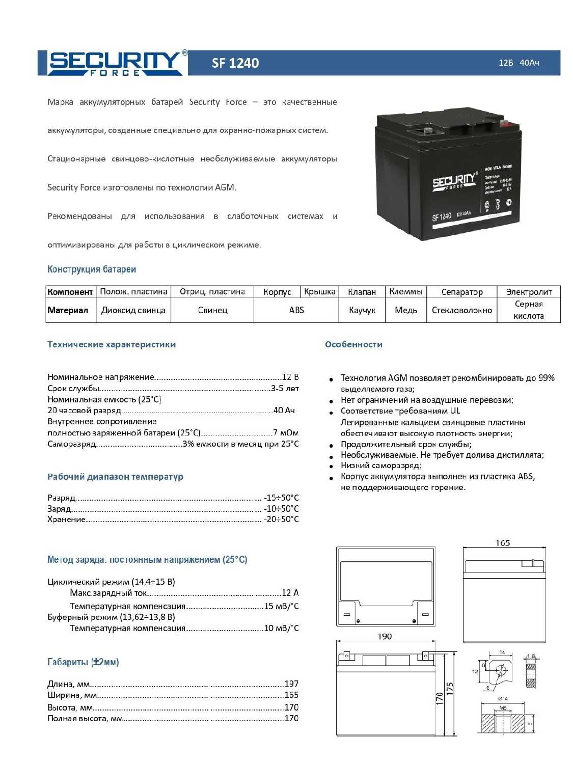 - Модель/исполнение: свинец (сухой элемент