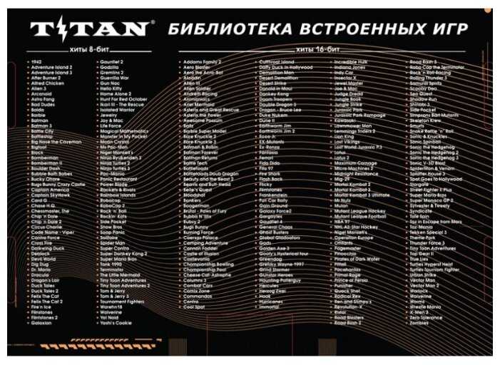- Включает хиты вроде Mortal Kombat, Battle City, Super Mario, Sonic, а также редкие проекты вроде Felix the Cat и Dune 2.