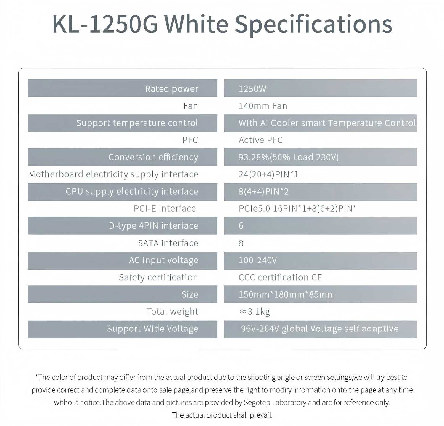 Характеристи Segotep KL-1250GW
