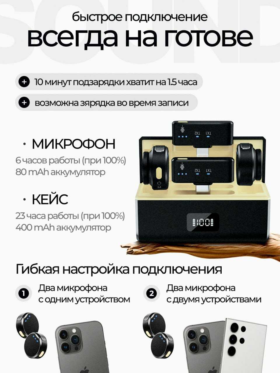 Качество звука просто огонь! Даже в шумной обстановке микрофон отлично справляется со своей задачей, отсекая лишние шумы. Голос звучит чисто и естественно, без лишних помех.