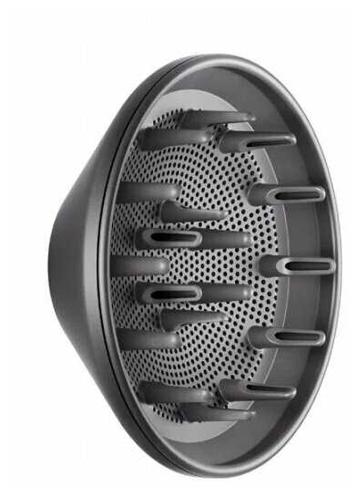 Диффузор обеспечивает выраженный кудрявый эффект за счёт особой конструкции отверстий, создающей завихрения воздуха. Однако короткие рожки и компактный размер осложняют работу с густыми прядями. Круглая насадка с зубцами может перекручивать волосы при неаккуратном использовании. -
