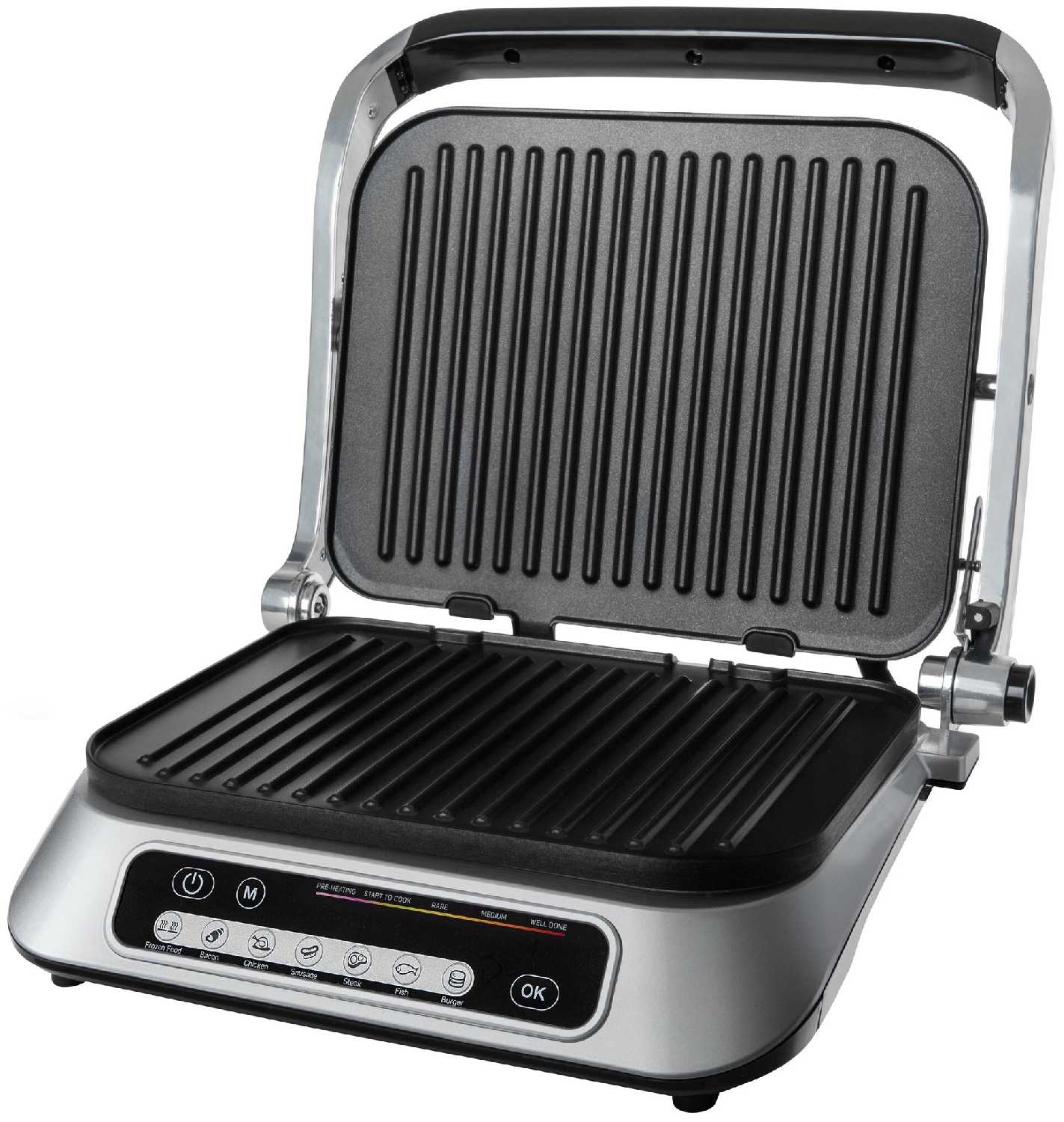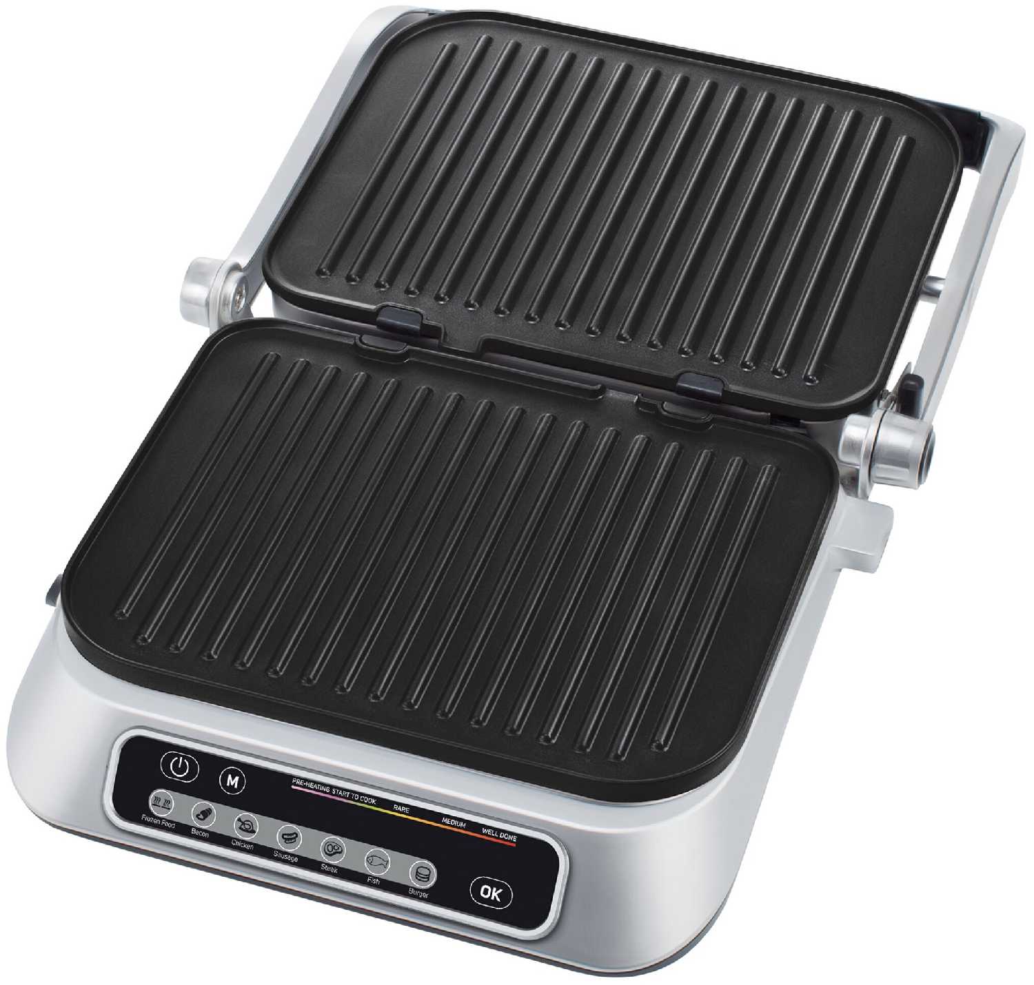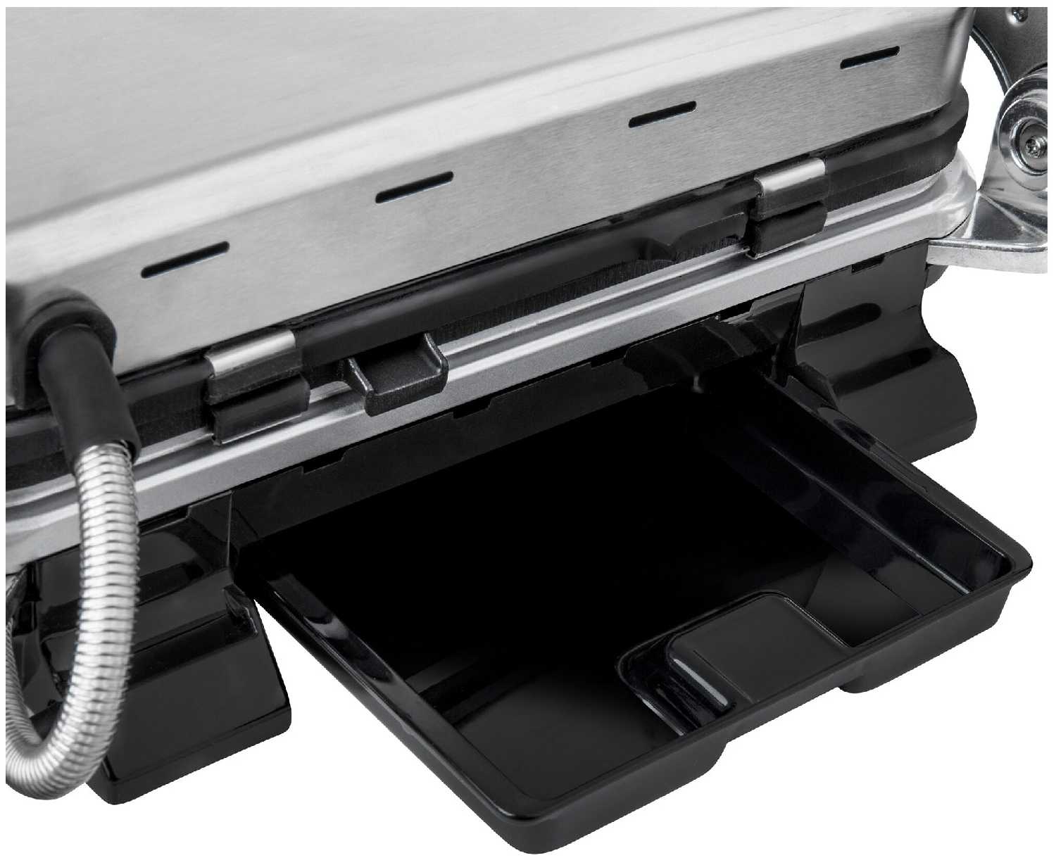 | Особенности : | антипригарное покрытие, контактный гриль, поддон для сбора жира, регулировка высоты верхней панели, решетка, съемные пластины |