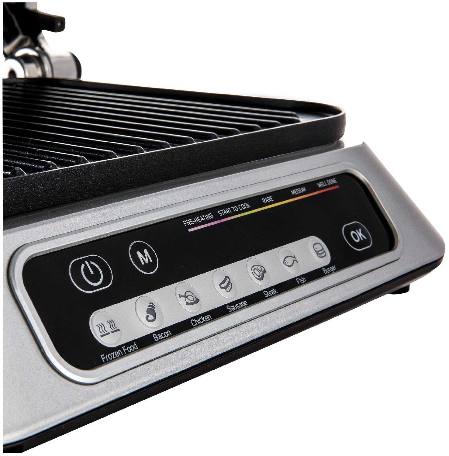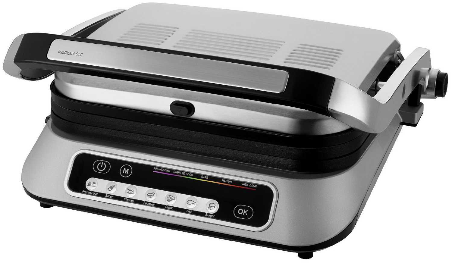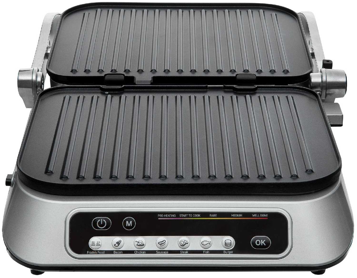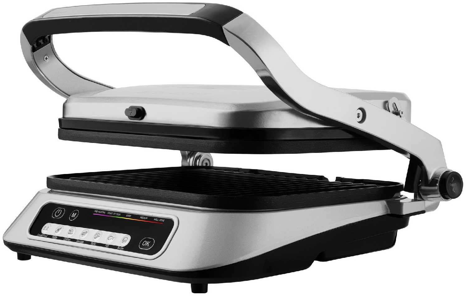 | Особенности : | антипригарное покрытие, контактный гриль, поддон для сбора жира, регулировка высоты верхней панели, решетка, съемные пластины |