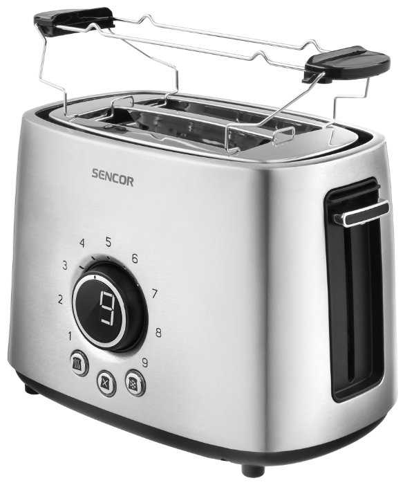 - + Высокая функциональность, удобство пользования - наличие поворотного переключателя режимов с LED дисплеем. Переключатель и дисплей находятся на боковой - видимой части тостера, а не на торце, что выгодно отличает эту модель от аналогов.