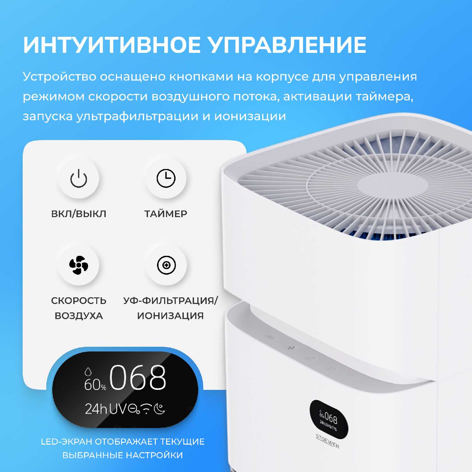 | Индикация : | включения, влажности, загрязнения фильтра, загрязненности воздуха, низкого уровня воды, температуры |
