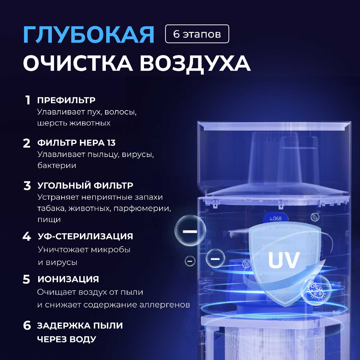 Основной расходник – HEPA-фильтр, требующий замены каждые 4-6 месяцев в зависимости от загрязнённости воздуха (при ежедневной работе). Водяной фильтр (если предусмотрен конструкцией) моется пользователями самостоятельно; его необходимость под вопросом – часть отзывов указывает на маркетинговую составляющую этой опции. -