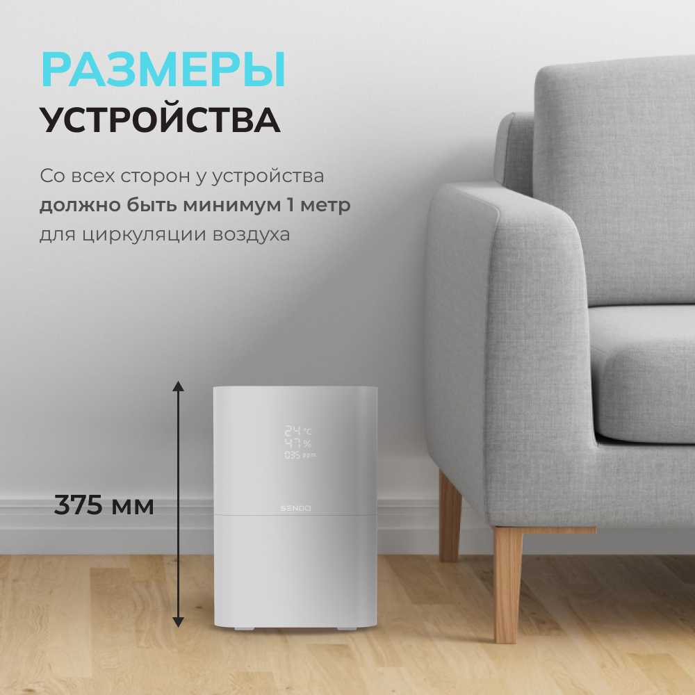 - Прирост влажности не превышает 8-9% в помещениях на границе заявленной площади (20 м²).