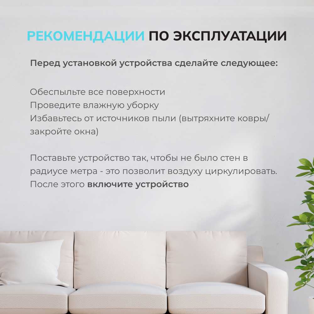 - + В первую очередь впечатлила мощность очистки: уже через 20–30 минут после включения чувствуется, как воздух становится свежее, особенно в помещении с сухим климатом или при наличии домашних животных.