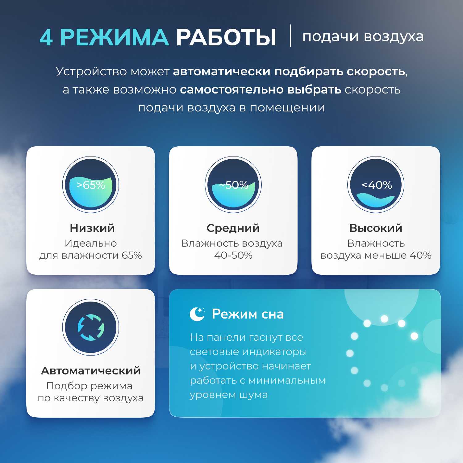 - В автоматическом режиме шум практически неразличим (уровень шума ≤25 дБ), что подтверждается комфортным сном рядом с прибором.
