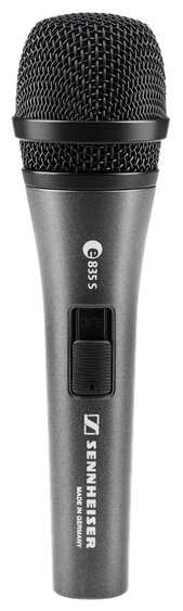 К Sennheiser E835-S-это отличный микрофон. Она делает все, что я ожидал от него. Это хорошо построен, и я никогда не имел никаких проблем с ним. Я использую Sennheiser для обоих вокала и гитарных кабинетов. Никаких проблем, звучит здорово. Отличные продукты!