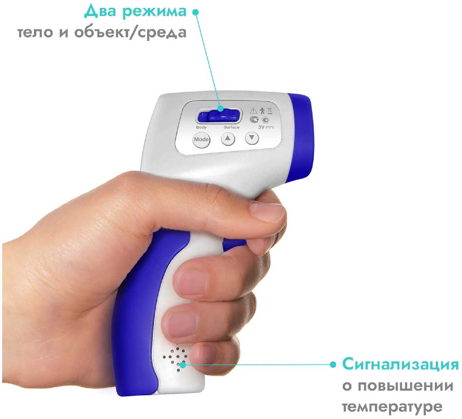- + Быстро и точно измеряет температуру, удобно держать в руке, калибруется