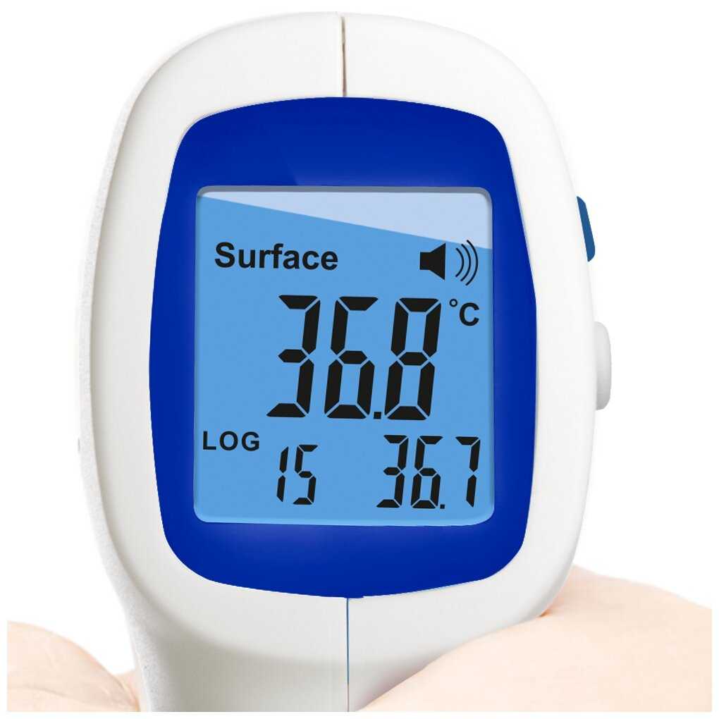 Особой подготовки к измерению темпы не требуется. Например, прибор не нужно трясти, чтобы сбить предыдущие показания. Просто направляешь луч на лоб, выдерживая не меньше 5 см от термометра до поверхности, и нажимаешь на «курок». Спустя секунду смотришь на экран – сколько намерили.