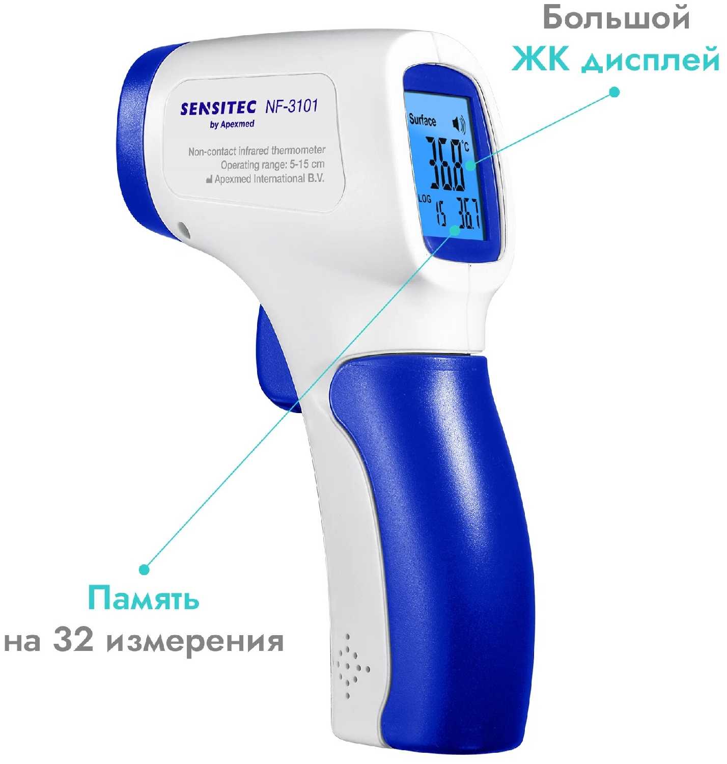 Sensitec nf 3101 – это бесконтактный термометр с очень чувствительным инфракрасным датчиком, который измеряет температуру тела на расстоянии 5-15 см. Не нужно тревожить больного и обеззараживать термометр до и после измерения температуры. К тому же, в отличие от обычного градусника, для измерения Sensitec нужно меньше секунды. Это настолько ускоряет и облегчает процесс, что возвращаться к обычному градуснику уже не хочется.