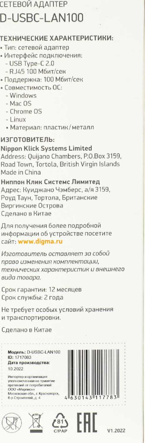 Digma D-USBC-LAN1000 [D-USBC-LAN1000]