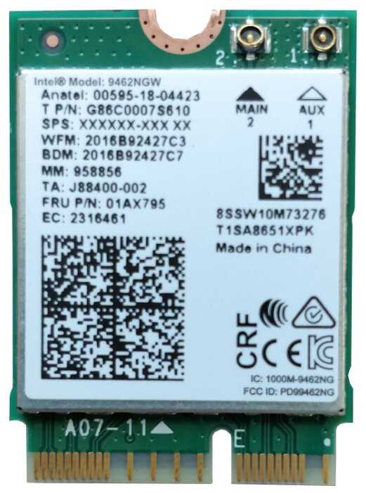 Характеристики:- Bluetooth+Wi-Fi-адаптер стандарт Wi-Fi: 802.11a/b/g/n/ac макс. скорость: 433 Мбит/с стандарт Bluetooth 5.0 подключение через M.2