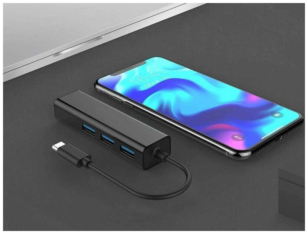 6.4/10 балловKS-is Сетевой переходник USB -С - LAN RJ45 c USB хабом на 3 порта, KS-is