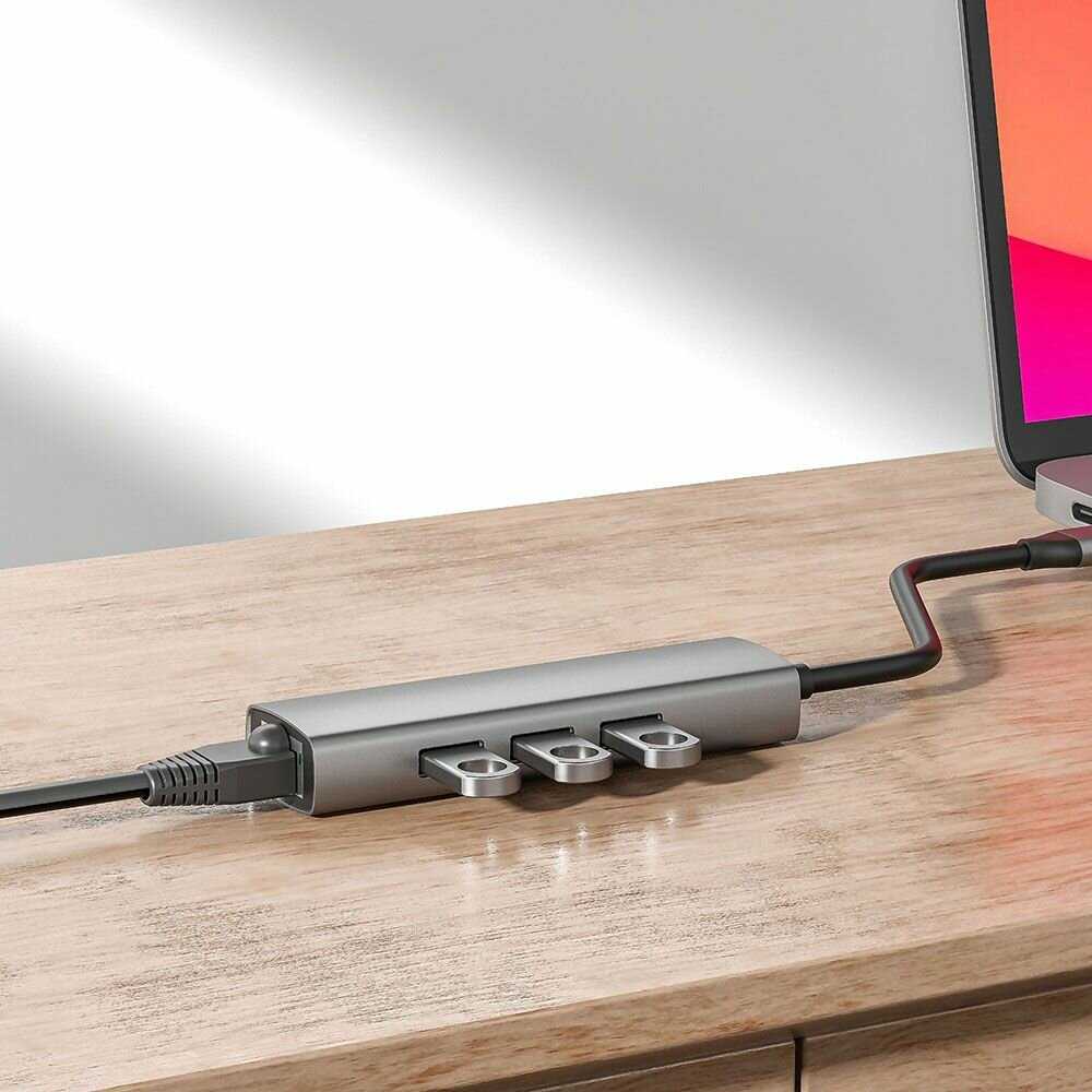 ORIENT Сетевая карта USB 3.2 Gen1 + USB-хаб на 3 порта ( JK-340N)