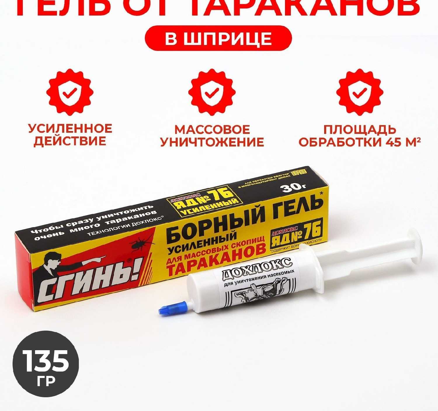 Дополнительная информация : | Борный гель усиленный, содержит борную кислоту, для массовых скопищ тараканов, ЯД№76, для обработки квартир в многоквартирных домах |