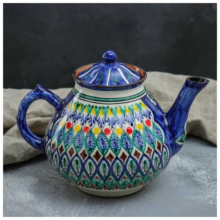 Комплектация : | Чайник Риштанская Керамика "Узоры", 1600 мл, синий |