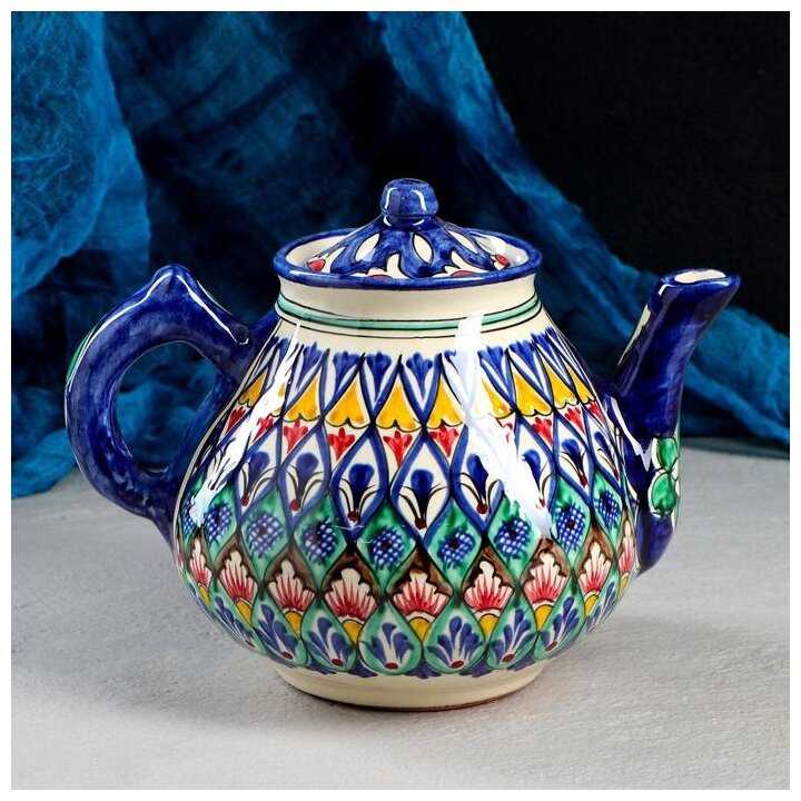 Дополнительная информация : | чайник подходит для заваривания чая, трав, фруктов, ягод. традиционная риштанская керамика, украшенная ярким орнаментом. |
