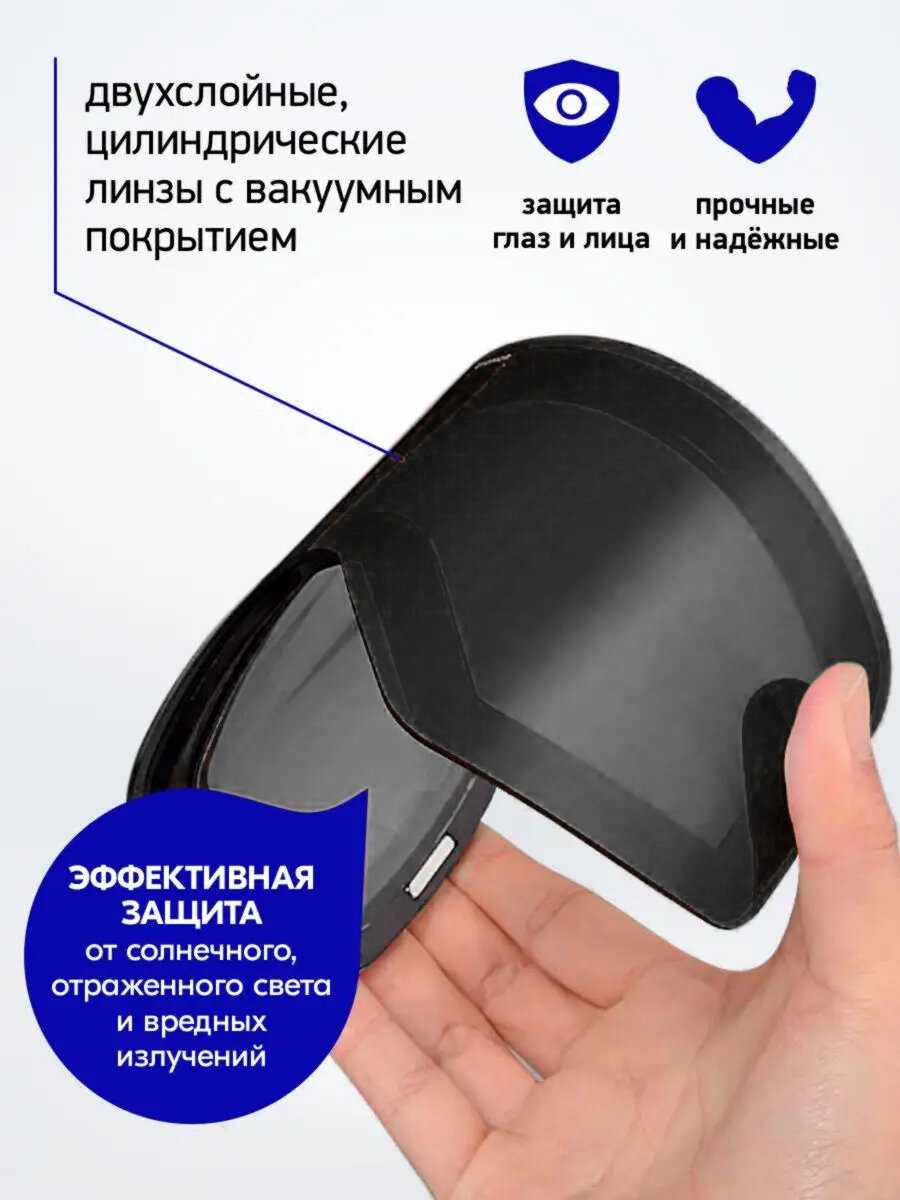 Особенности : | УФ-защита, антибликовое покрытие, быстрая смена линз, вентиляция, защита от запотевания, ношение поверх очков, поляризационный фильтр |