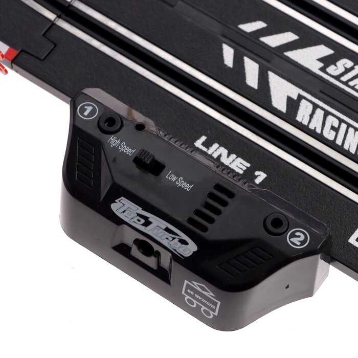 Детали трека плохо стыкуются между собой, легко вылетают из пазов и в целом сделаны плохо. Пульты и блок питания - из самого дешевого и мерзкого пластика из возможных. Детали машинок отлиты криво.