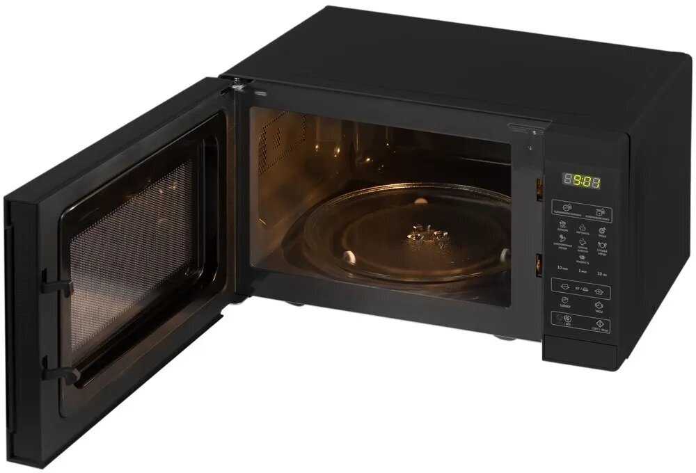 Часть пользователей считает высоту камеры недостаточной для высоких тарелок или объемных блюд. Однако компактные габариты микроволновки компенсируются продуманной формой камеры, которая вмещает стандартную посуду диаметром до 22–25 см. Для разогрева и разморозки этого хватает. -