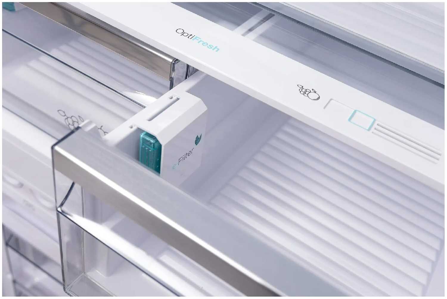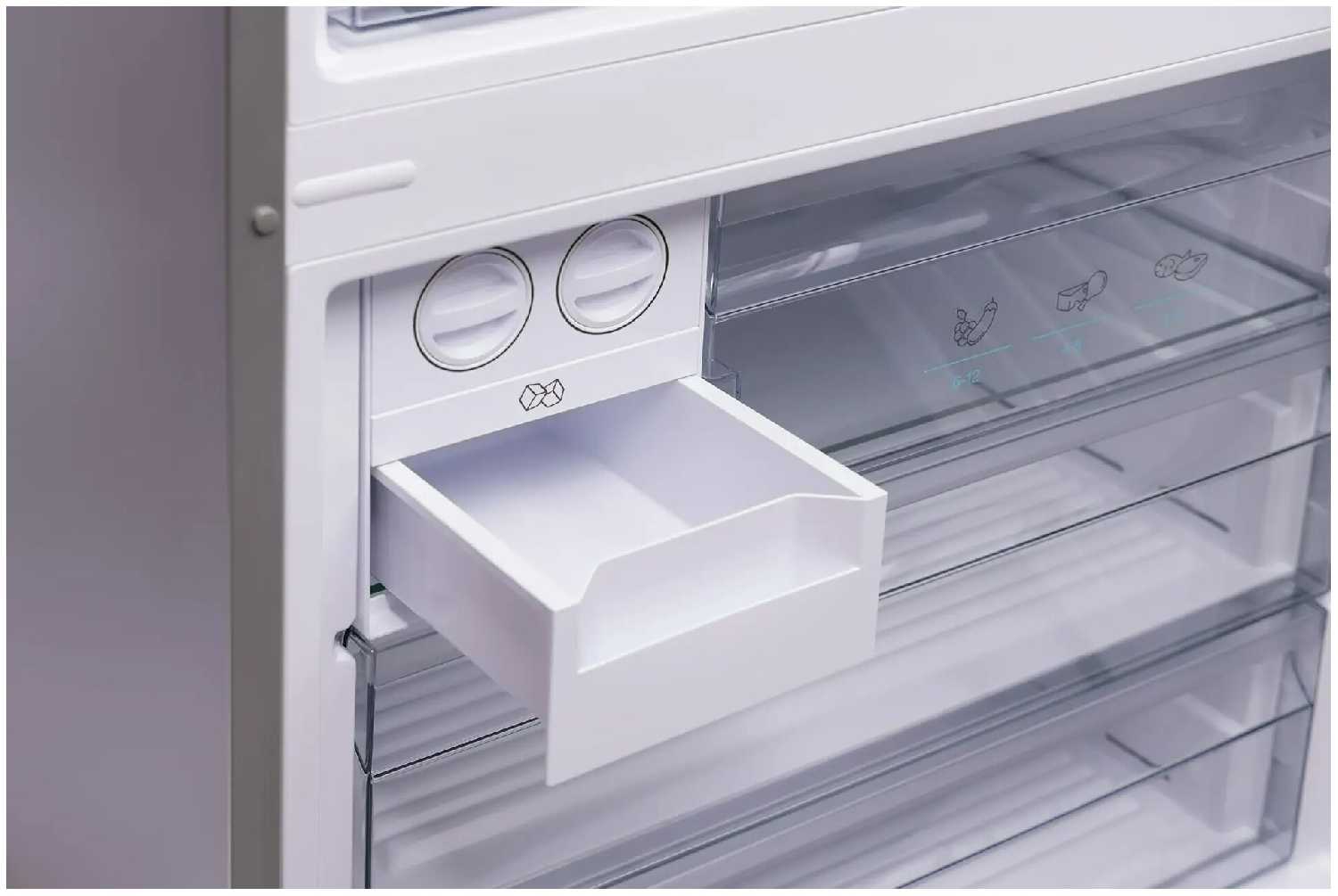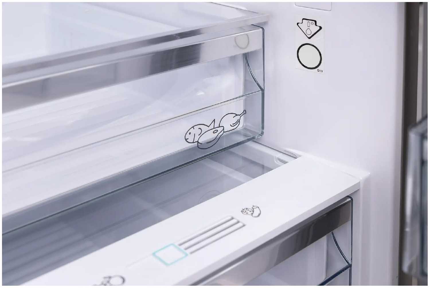Внутри постоянно поддерживается стабильная температура около 0°C и оптимальная влажность. Этот эффективный способ охлаждения продуктов, защищающий их от заветривания и перемерзания. В модели предусмотрены глубокие ящики, создающие специальную среду, чтобы разделить хранение продуктов, мяса, рыбы, фруктов и овощей, сохраняя их вкус и полезные свойства намного дольше. В зоне свежести постоянно поддерживается оптимальная температура.