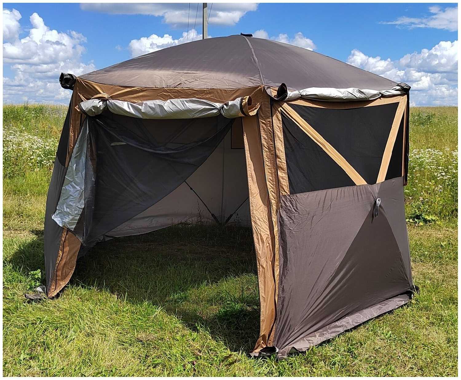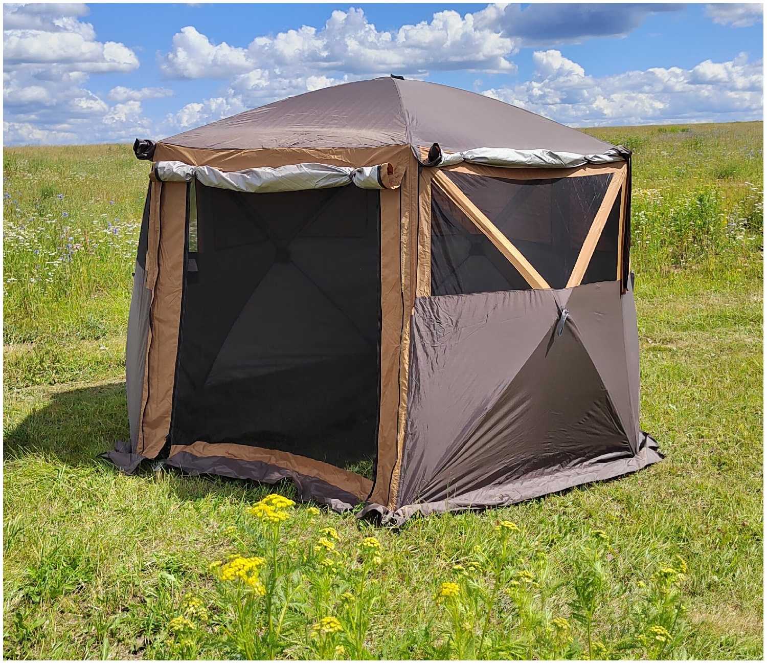 6.7/10 балловTerbo Комфортный шатер-беседка 360*360*215 см шестиугольный для отдыха в походе, в кемпинге, на природе или даче.