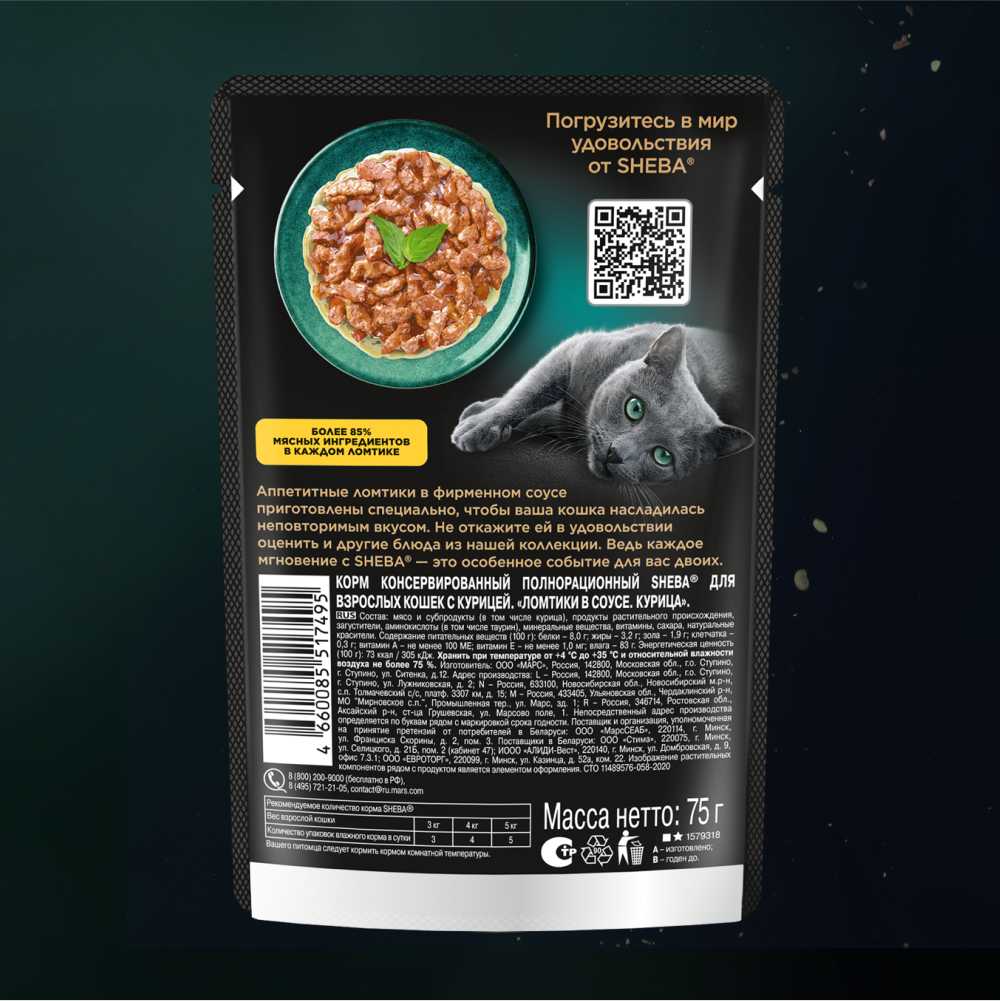 Пищевая привлекательность и вкусовые предпочтения кошек: Абсолютное большинство владельцев подтверждают высокую поедаемость корма Sheba кошками различных возрастов и характеров. Особо отмечается предпочтение вкуса курицы, причем некоторые животные избирательно употребляют только этот вариант из линейки. Мелкие кусочки в желе оптимальны для пожилых кошек с чувствительным пищеварением, а обильное количество соуса повышает аппетит даже у привередливых особей. При этом зафиксирован единичный случай аллергической реакции в виде зуда, требующий внимания владельцев животных со специфической чувствительностью. Интересно, что отдельные кошки демонстрируют абсолютную лояльность к бренду, отказываясь от альтернативных кормов, что свидетельствует о сильных вкусовых качествах продукта. Сравнение вкусов внутри ассортимента показывает, что рыба и другие варианты уступают курице в популярности, но всё равно охотно поедаются при чередовании рациона.