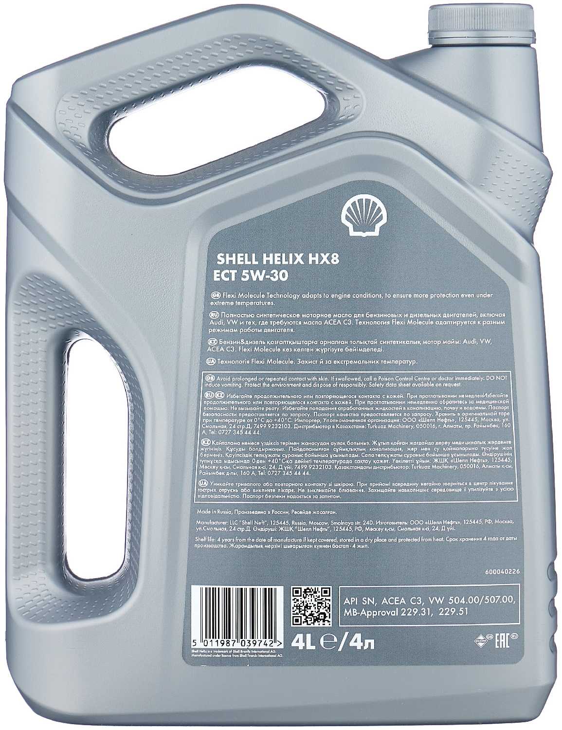 Отзывы о Синтетическое моторное масло SHELL Helix HX8 ECT 5W-30
