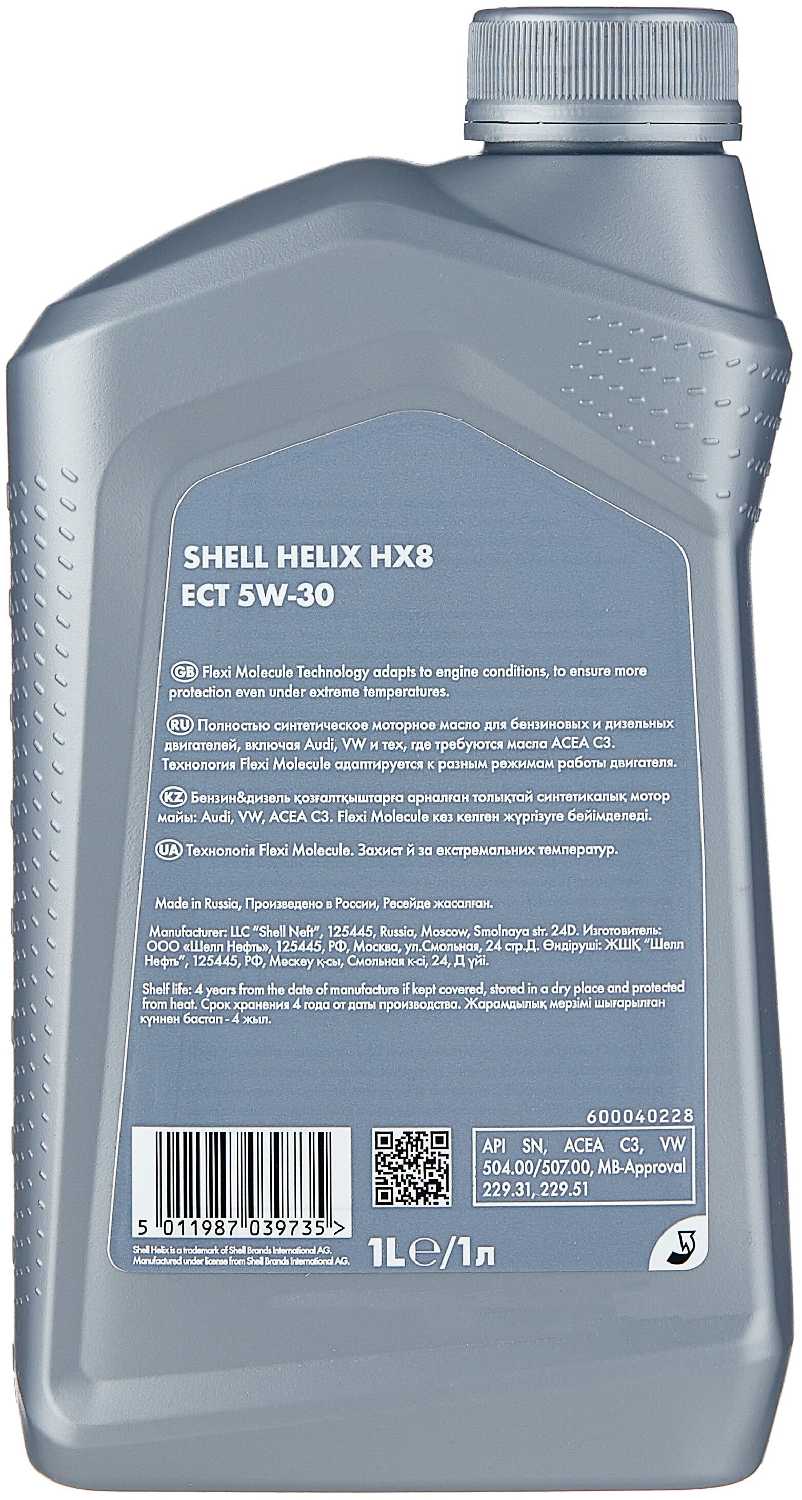В целом масло хорошее - как для бензина, так и для дизеля - уже заливал. Крайний раз заказывал у продавца Trademarket - Shell Helix ECT 5w30, но прислали более дешёвое и другой вязкости Shell Helix HX8 5W40. При получении не распаковал - заметил не сразу. Но куда применить найду. Наклейка наклеена криво, 22 год производства.