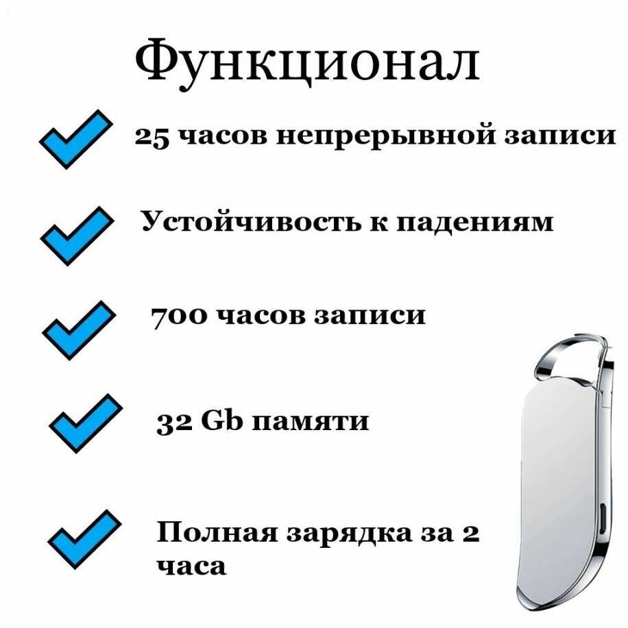 - + Емкости аккамклятора и памяти хватает на три дня без перерыва работы диктофона.