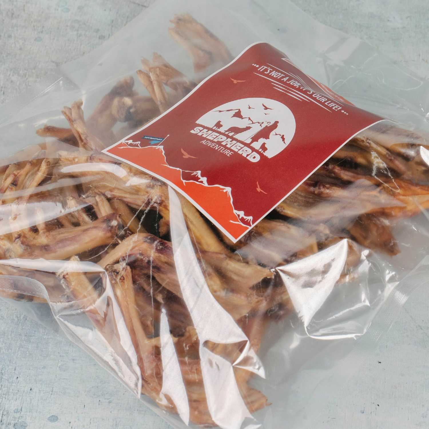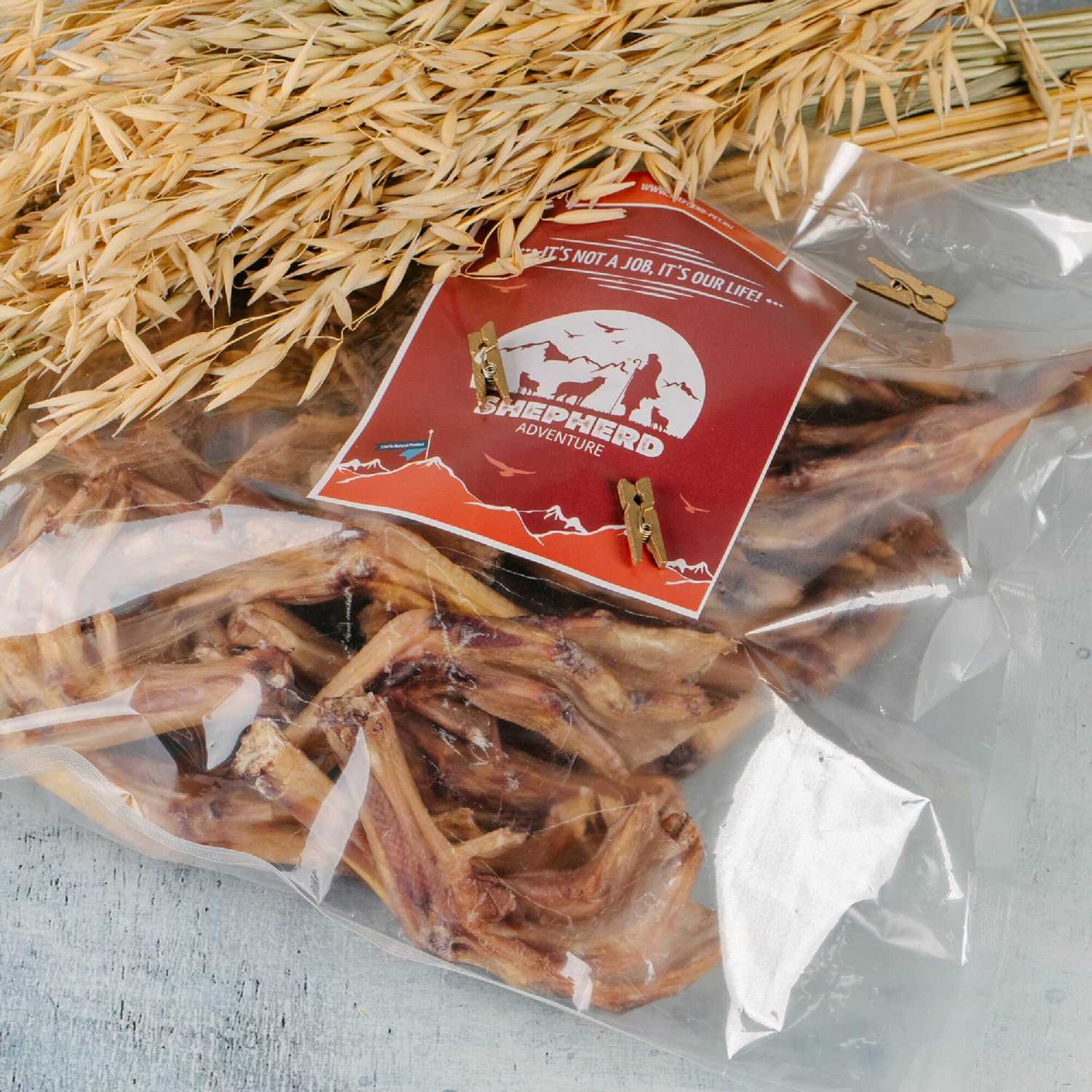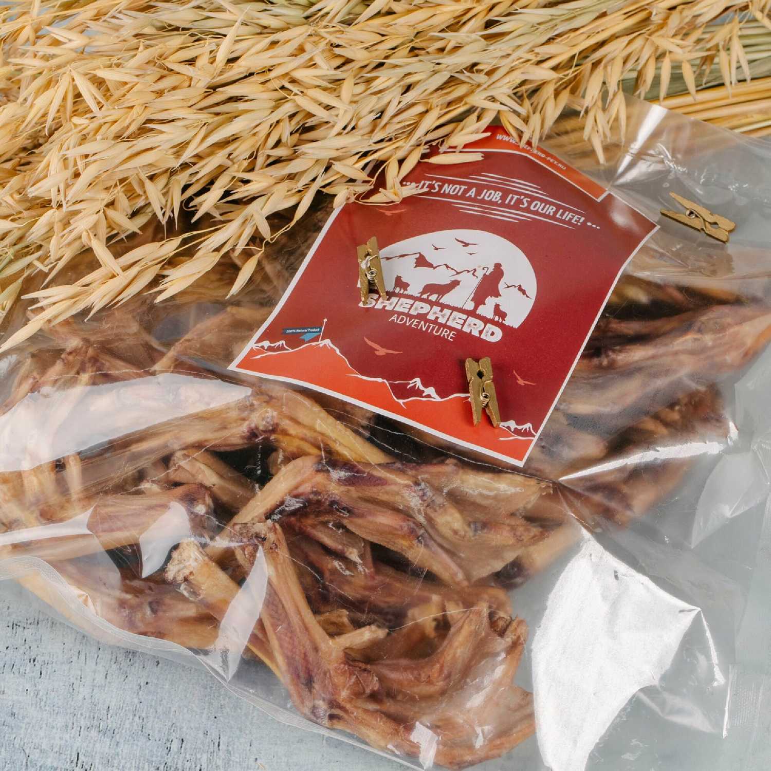 - + Лапки отлично высушены, собаки хрумкают с радостью и очень быстро. Запах приятный, пакет стоит открытый и запаха нет совсем . Рекомендую !