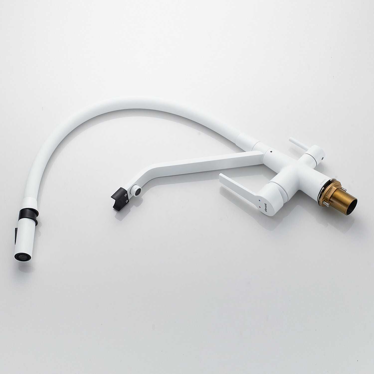 Долго выбирала смеситель на кухню. До этого был тоже хороший, но с очень высоким изливом-брызги по всей рабочей поверхности. Этот выбрала в том числе и из-за невысокого излива(19 см). Высота самого крана 44 см. Ручки работают плавно. Переключение на душ также плавное. Магнит держит достаточно крепко, если специально по нему не бить. Подключение не вызвало сложностей, т. к. до этого уже стоял кран с подключением к фильтру. Упакован был в фирменную коробку, правда в двух местах на упаковке были вмятины. На сам смеситель это не сказалось. Доставка в срок. К покупке советую.