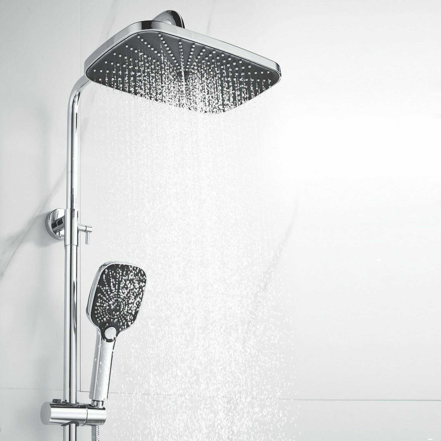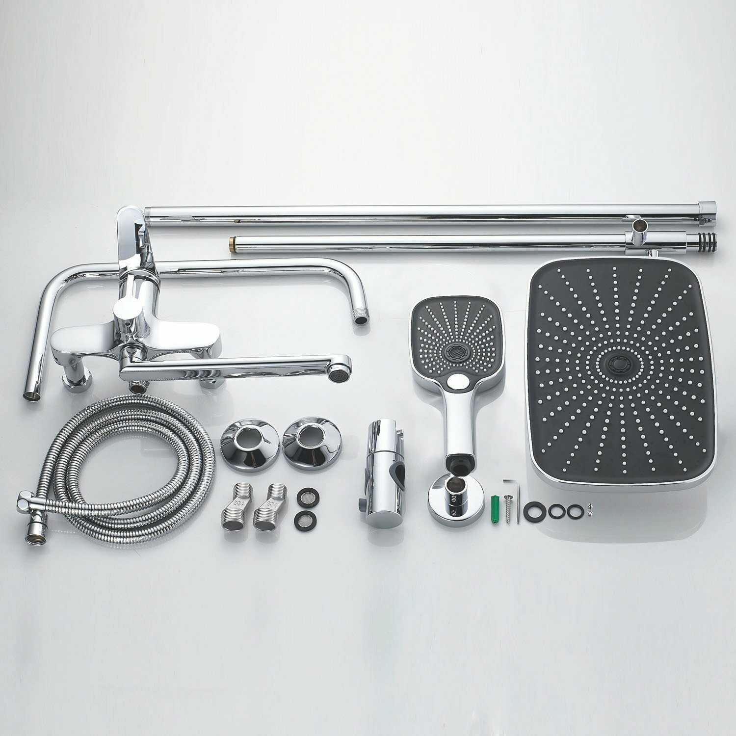 Комплектация : | верхний душ, душевая стойка, душевая штанга, лейка, смеситель, шланг, эксцентрик |