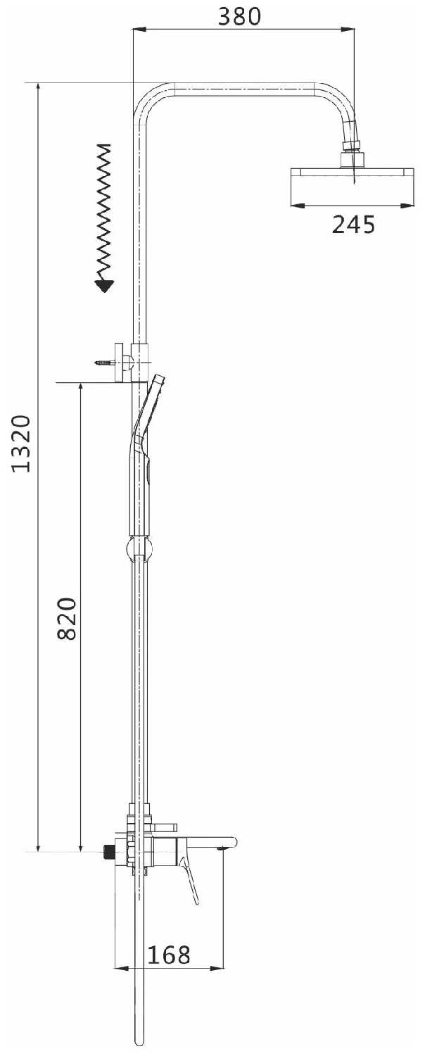 | @Комплектация : | душевая лейка, шланг для душа, верхний душ, душевая стойка |