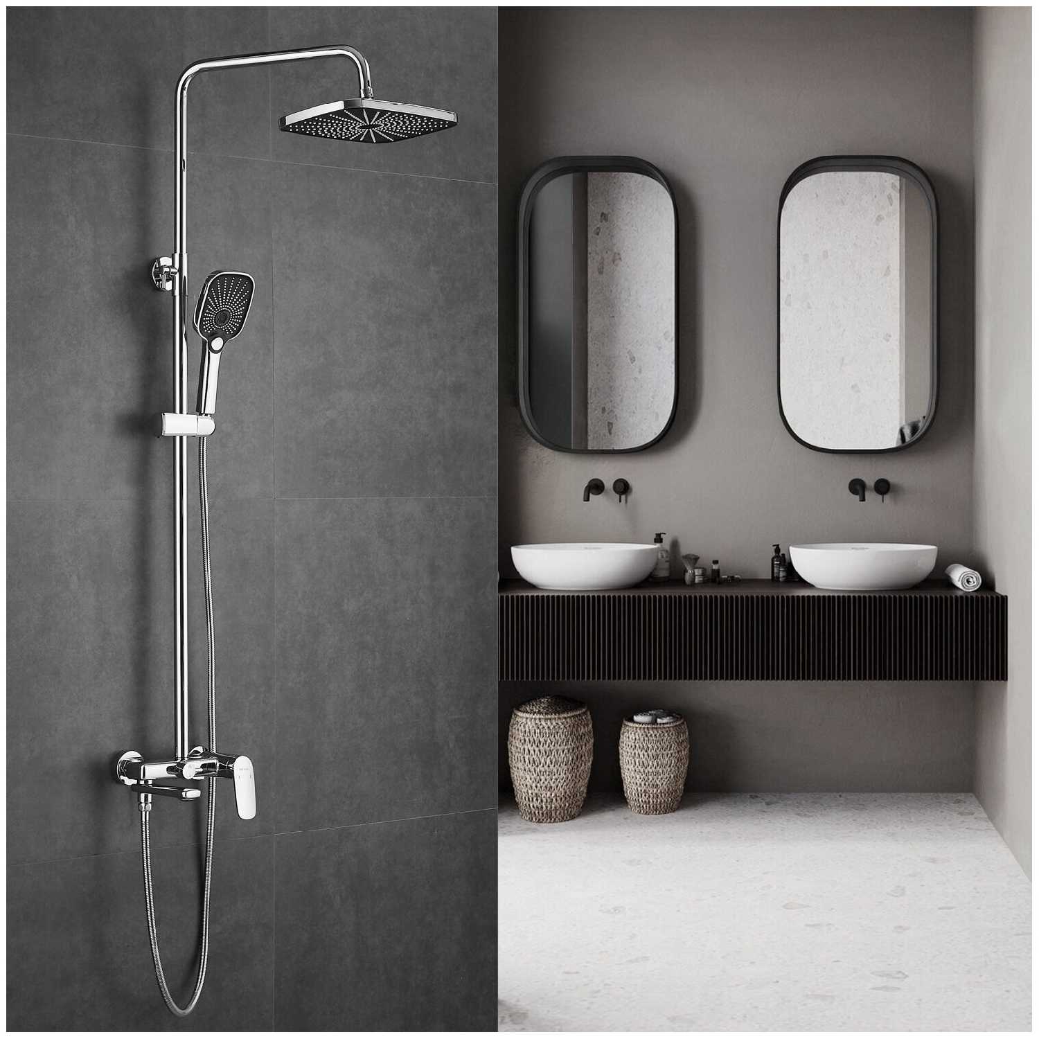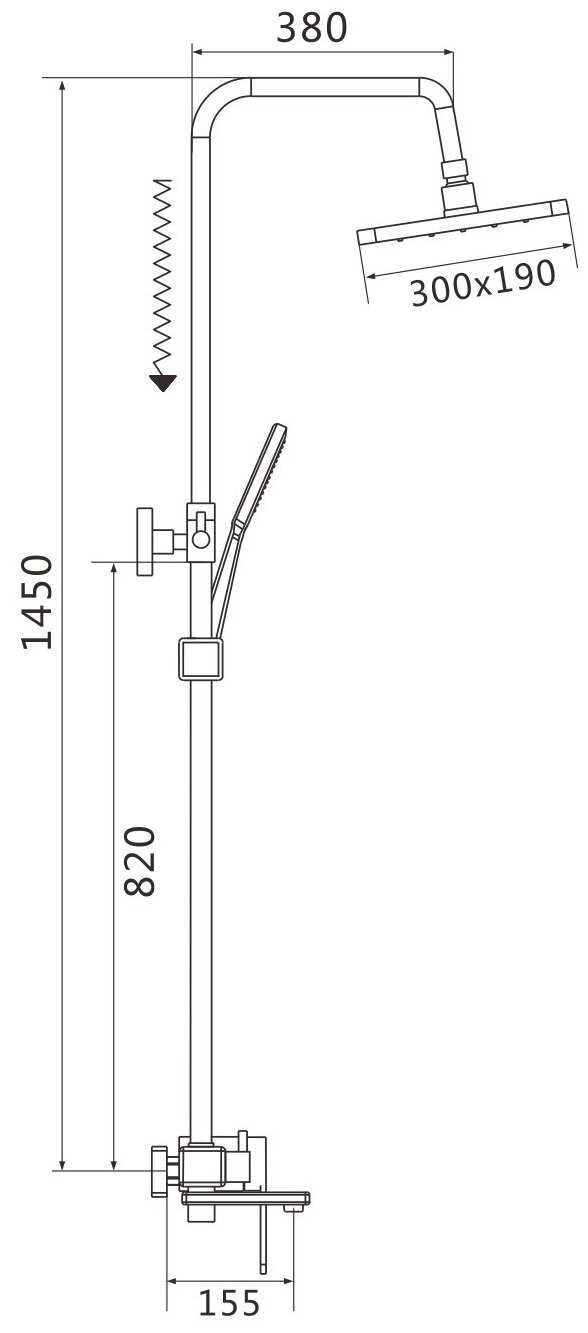 Комплектация : | верхний душ, держатель лейки, душевая штанга, кронштейн, лейка, ручной душ, смеситель, шланг |