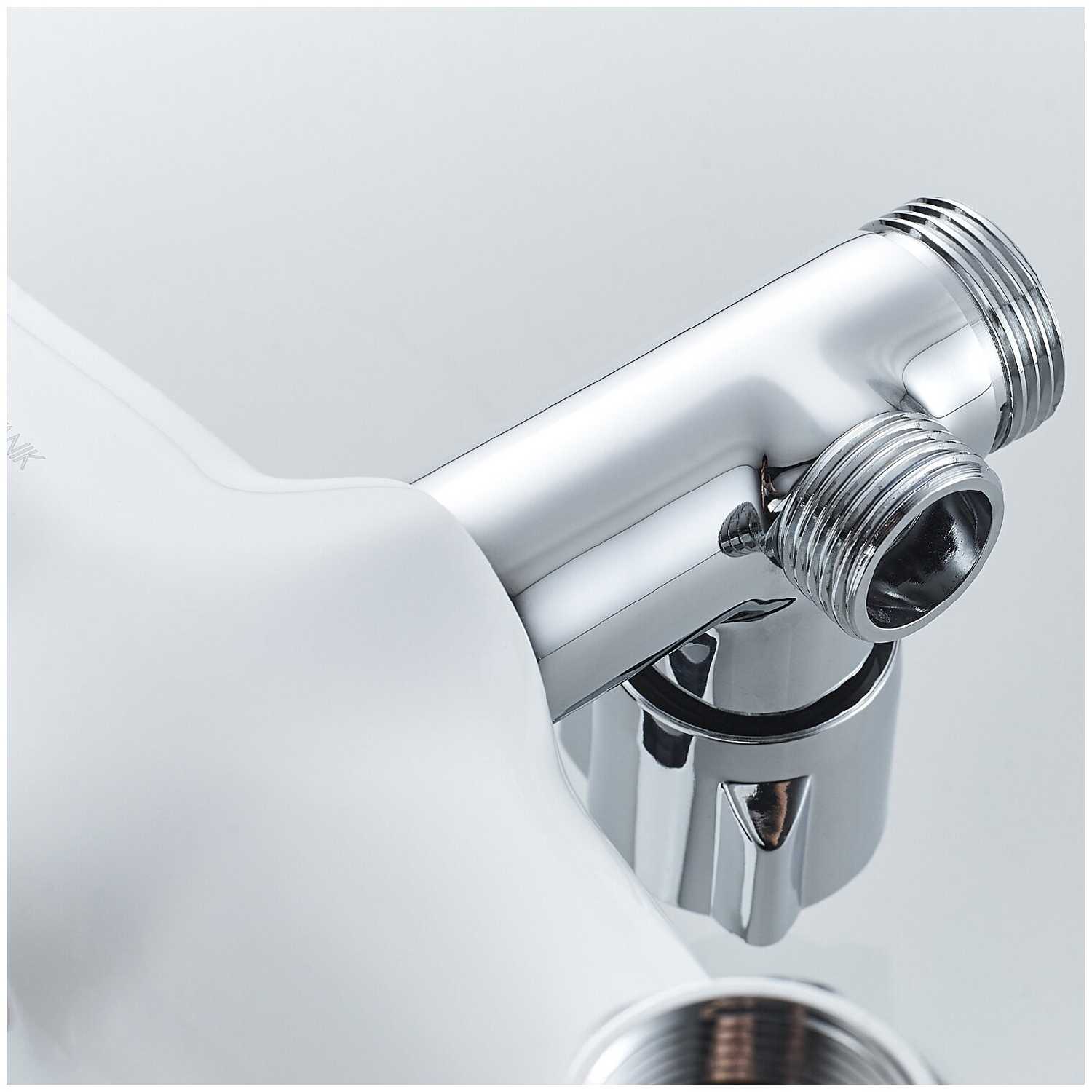 - Ствол трубы белый, система смесителя где кран (внизу) тоже, а вот лейки розовые. Я не стала возвращать товар, так как у меня ванна с элементами розового и мне подходил, Но тем кто хочет исключительно белый, не подойдет.