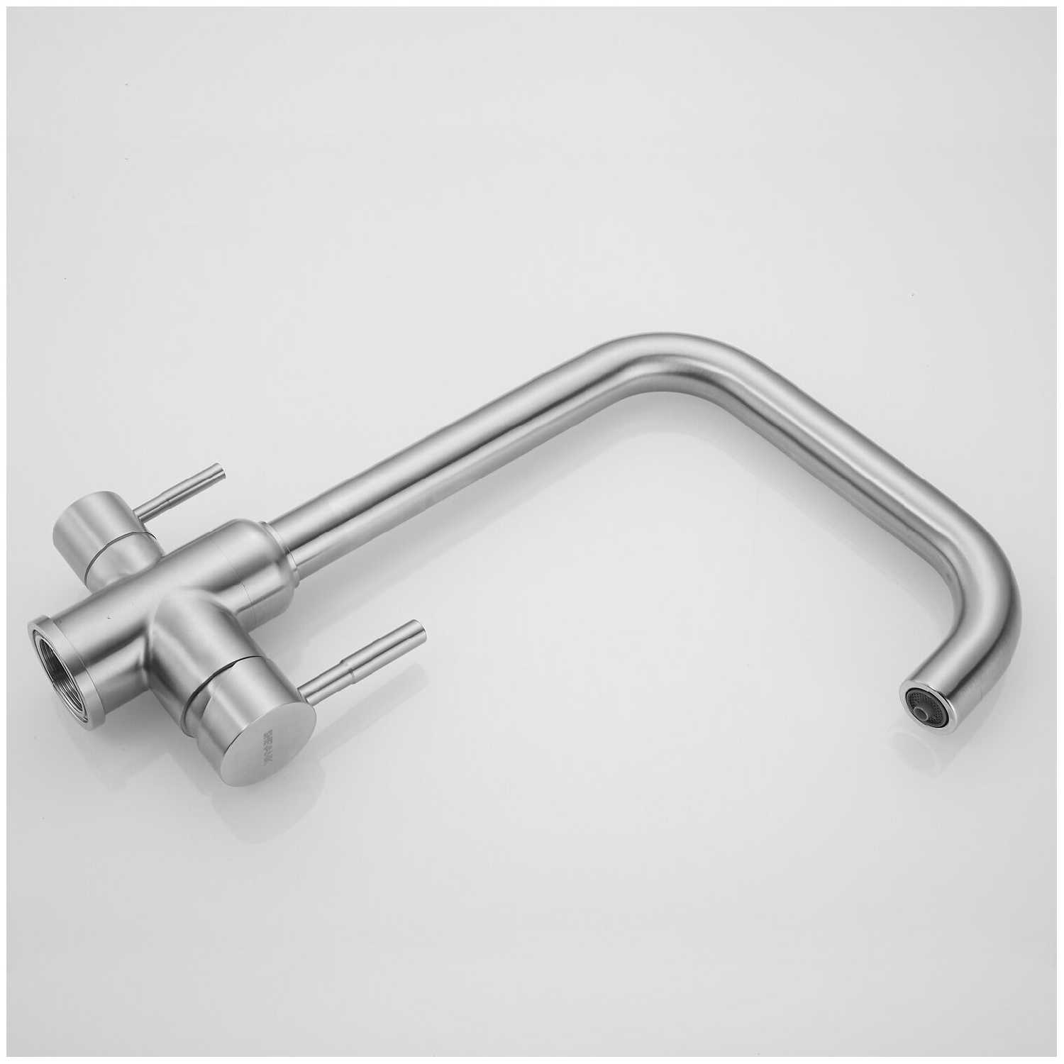 Очень хороший смеситель за свои деньги. В комплекте есть подвод для фильтра и два подвода для обычной воды, которые идут с короткими штуцерами, и их трудно закручивать.