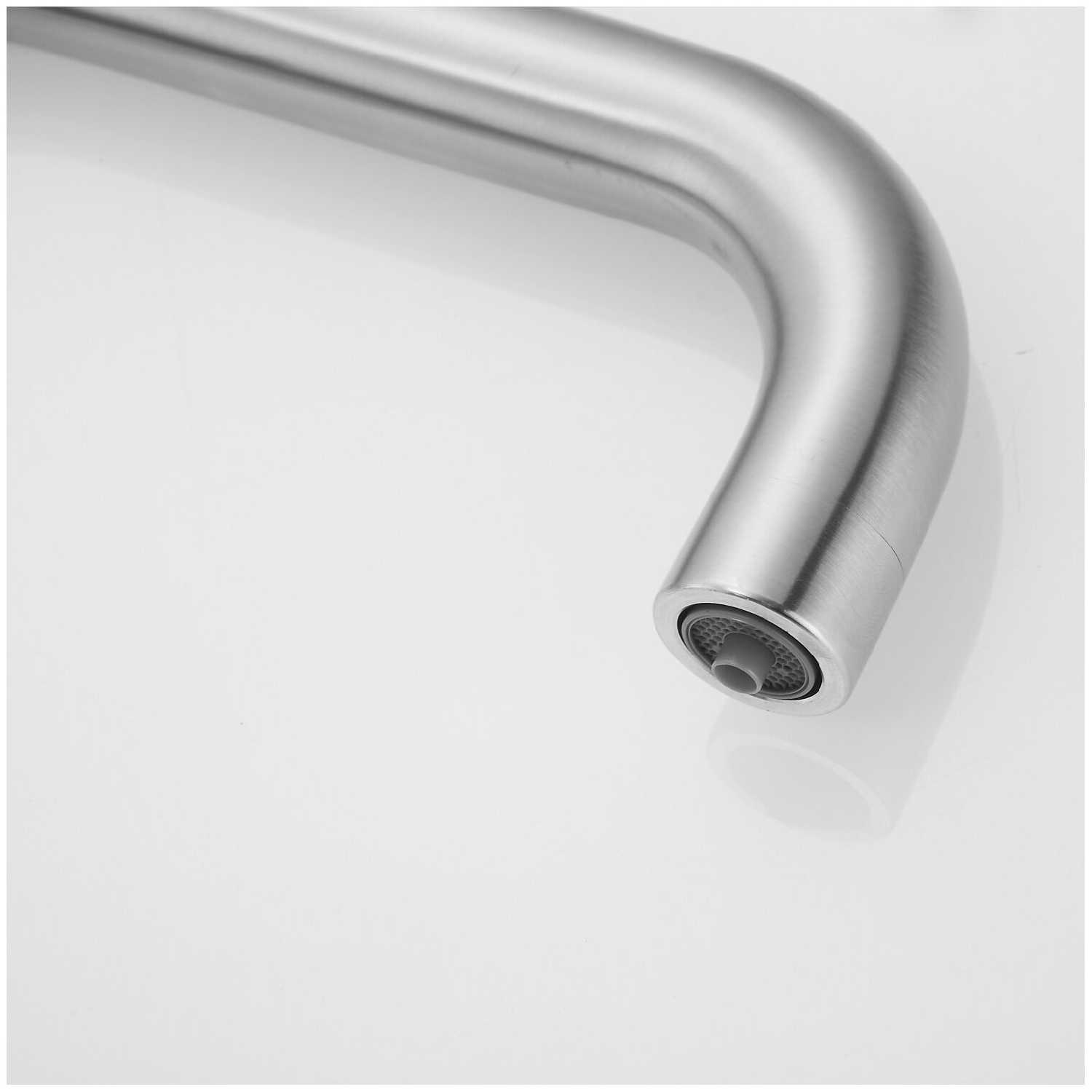 Смеситель конечно не премиум класса, но для своих денег очень даже ничего. Короткие подводы, но это не проблема. Смеситель цвета нержавеющая сталь, по-другому сатин, смотрится красиво. Плавное переключение воды. Единственное, лепесток в форме палочки, может откручиваться со временем, но это тоже не проблема, можно на герметик зафиксировать