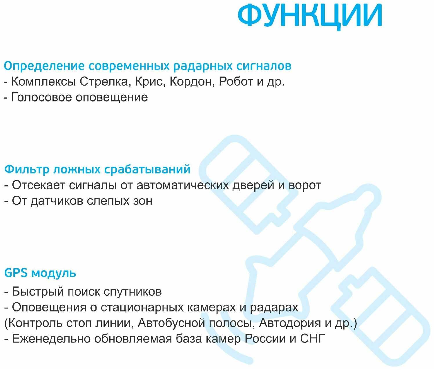 - + Хороший антиродар пользуюсь аналогичной моделью только не сигнатурный около 7 лет ,где только не проехал ,штрафов 0,купил в подарок )